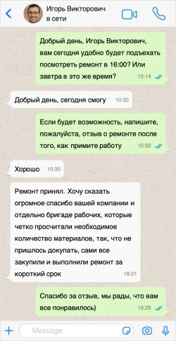После подписания договора приступаем к ремонту. Продолжительность капитального ремонта составляет двадцать дней, а косметического пять. Срок работы зависит от размера помещения и его особенностей.